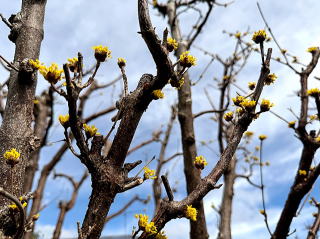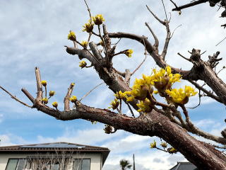 まだ蕾の頃の2月21日(土)と22日(日)にすかさずメジロ2羽が飛来、その後28日(土)、3月4日(水)