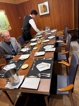 丸の内ホテルの仏レストランで、8名のワイン愛好家による少人数会合を催した。